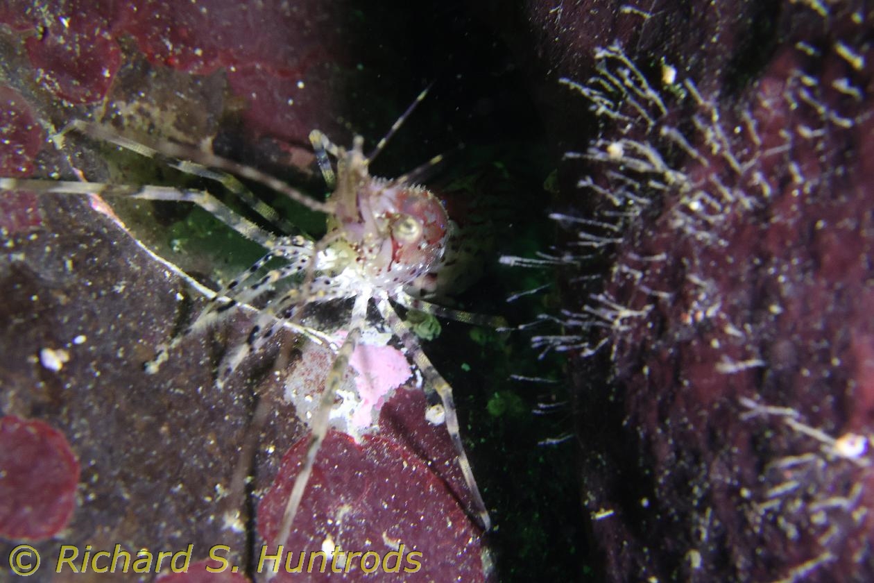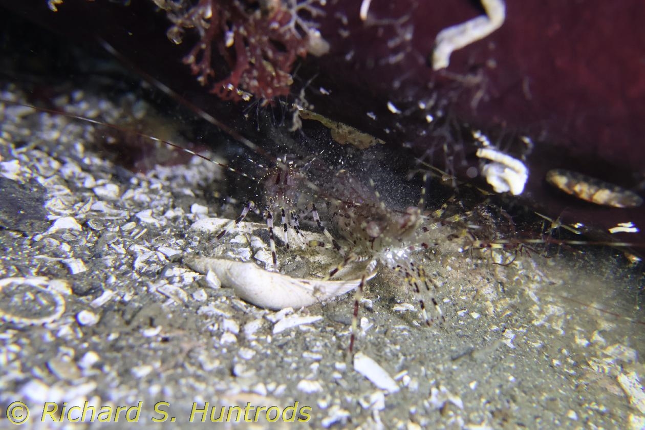 Then headed along line to boat island take-off spot and headed south to boat island. Found octo in den there as well. Then SE back to reef and pipeline